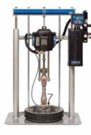 GRACO高粘度輸送設(shè)備,采用特殊設(shè)計的柱塞泵的形式,適合高粘度材料的輸送、擠涂和噴涂,可處理100萬厘泊粘度的物料。由于采用壓盤擠壓供料的形式,壓盤周邊的密封圈緊貼包裝桶內(nèi)壁向下滑行,這樣可將材料泵送干凈,絕少浪費。